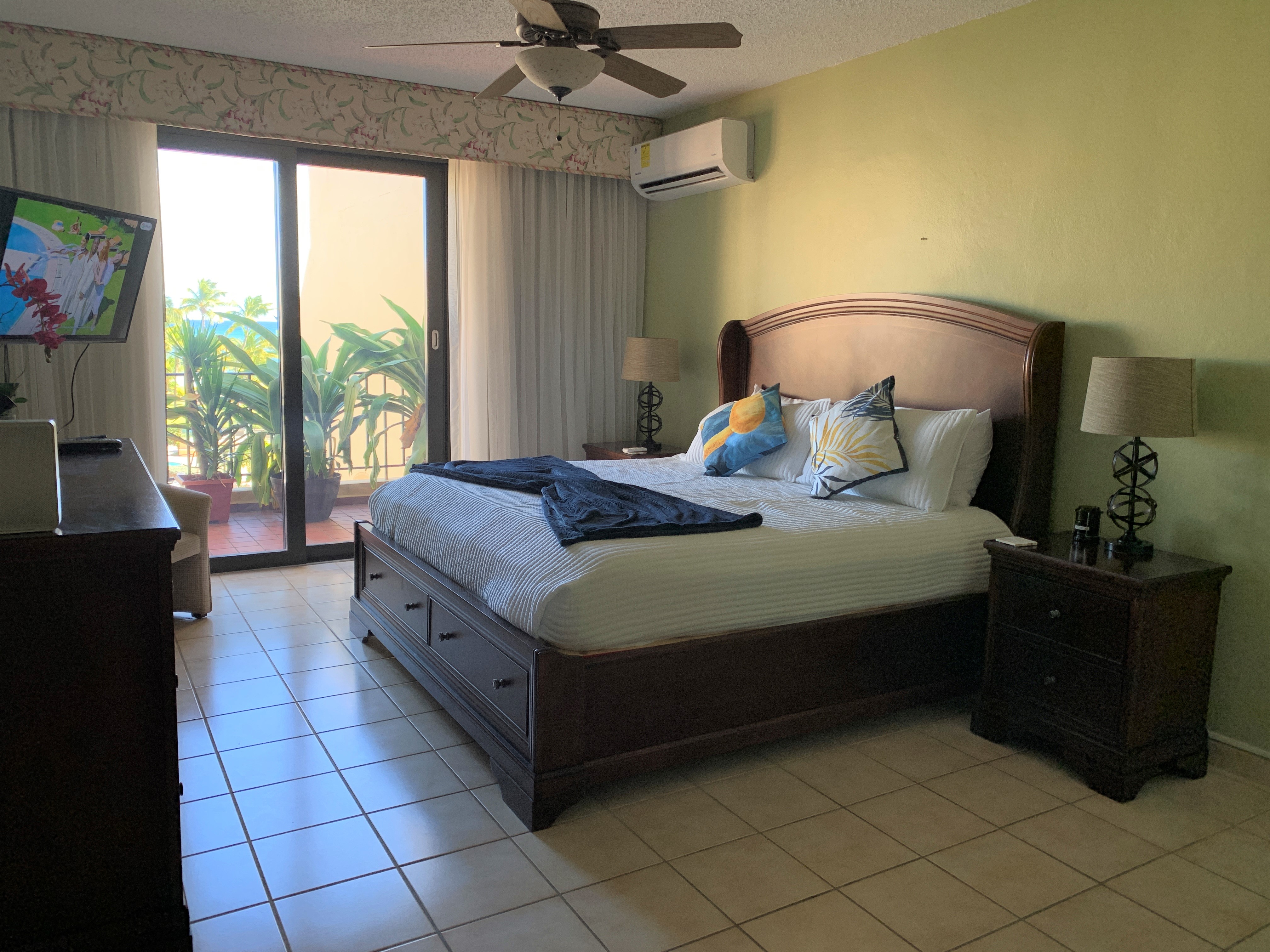 2 Bedrooms/ 2 Baths Sleeps 4 and 2 small children - Single Level. 3rd Floor Villa. Elevator access. Renovated kitchen and master bath. Spectacular Ocean View and Pool view from balcony and bedroom, walking distance to beach and Pool. Fully equipped and furnished. 1 King Master Bedroom, 1 Queen bed in 2nd bedroom. Small room for children. Central AC, Cable TV and Wi-Fi.